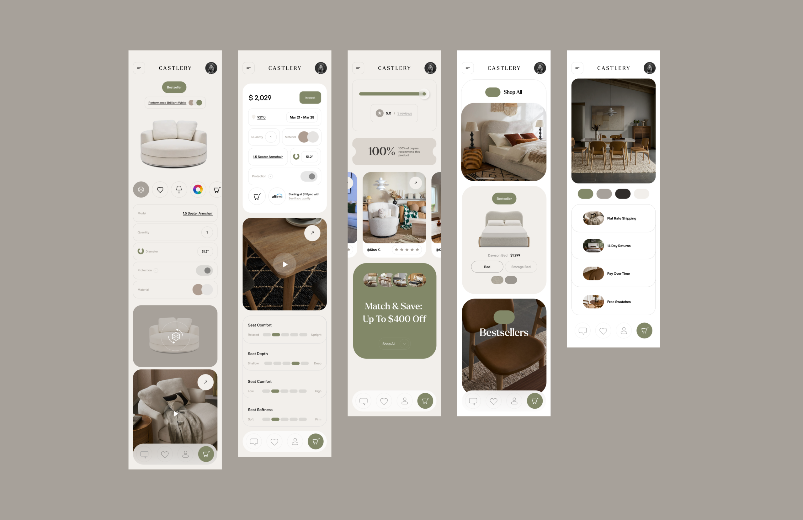 Castlery is a furniture eCommerce brand with a wide catalog and layered category structure. The store had strong products and solid brand foundations, but the interface lacked a clear visual hierarchy. Too many elements competed for attention, color was decorative rather than functional, and navigation required cognitive effort instead of guiding users intuitively.