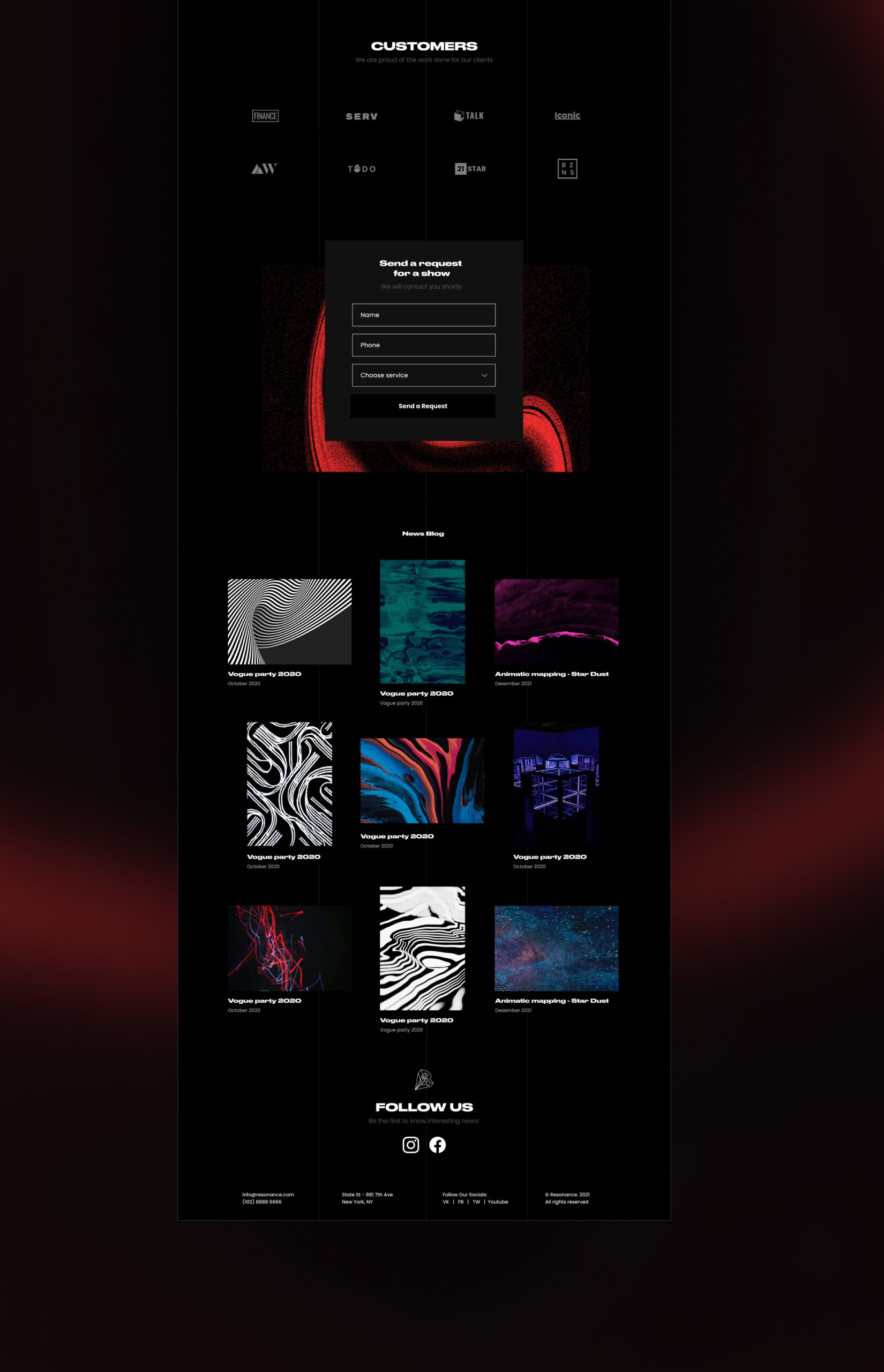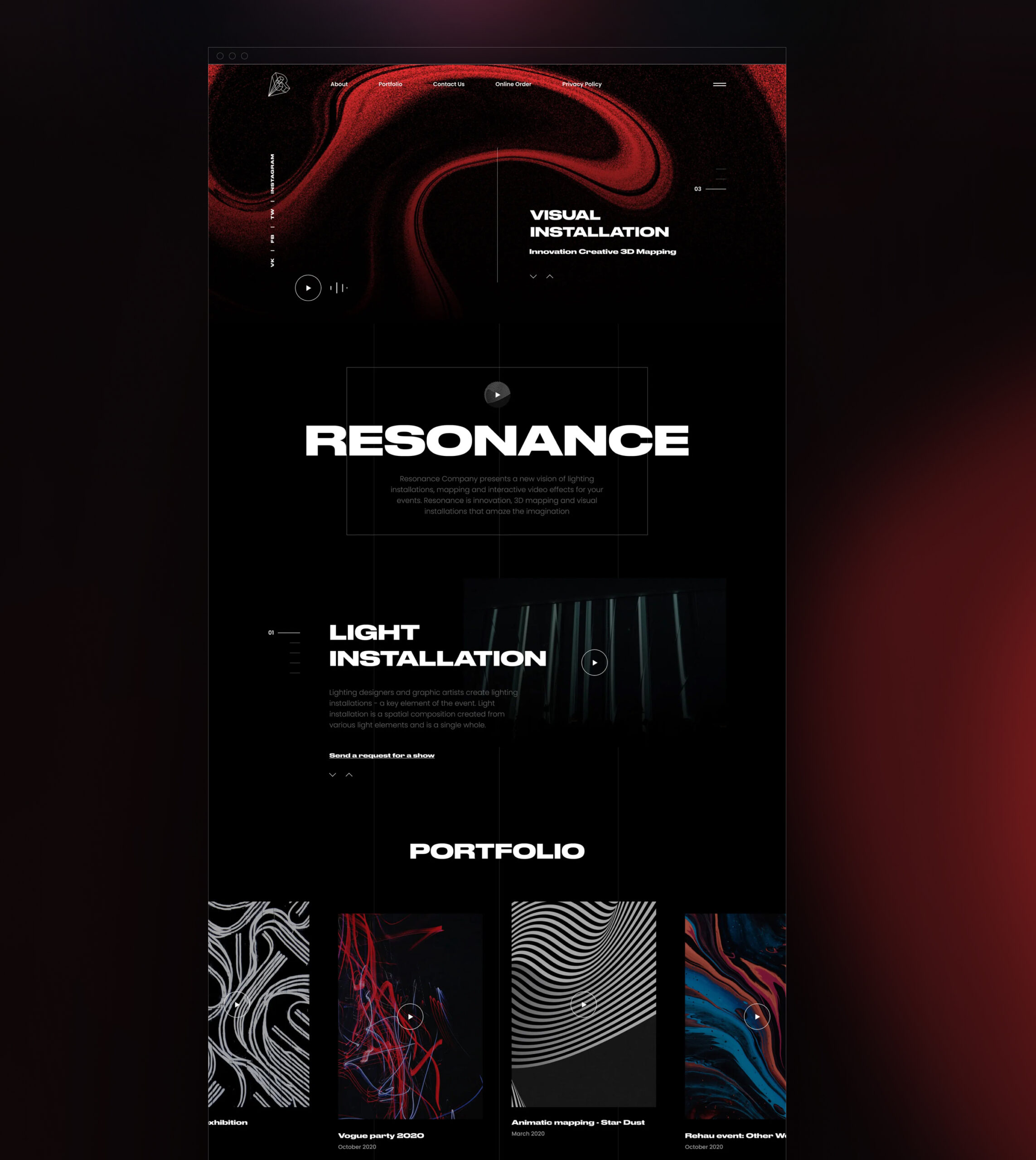 Resonance is a creative studio specializing in 3D mapping, light installations, and immersive event experiences. At the time of collaboration, the company had no structured digital presence. Their work existed offline and in fragmented materials, without a central platform to present projects, attract clients, or communicate positioning.