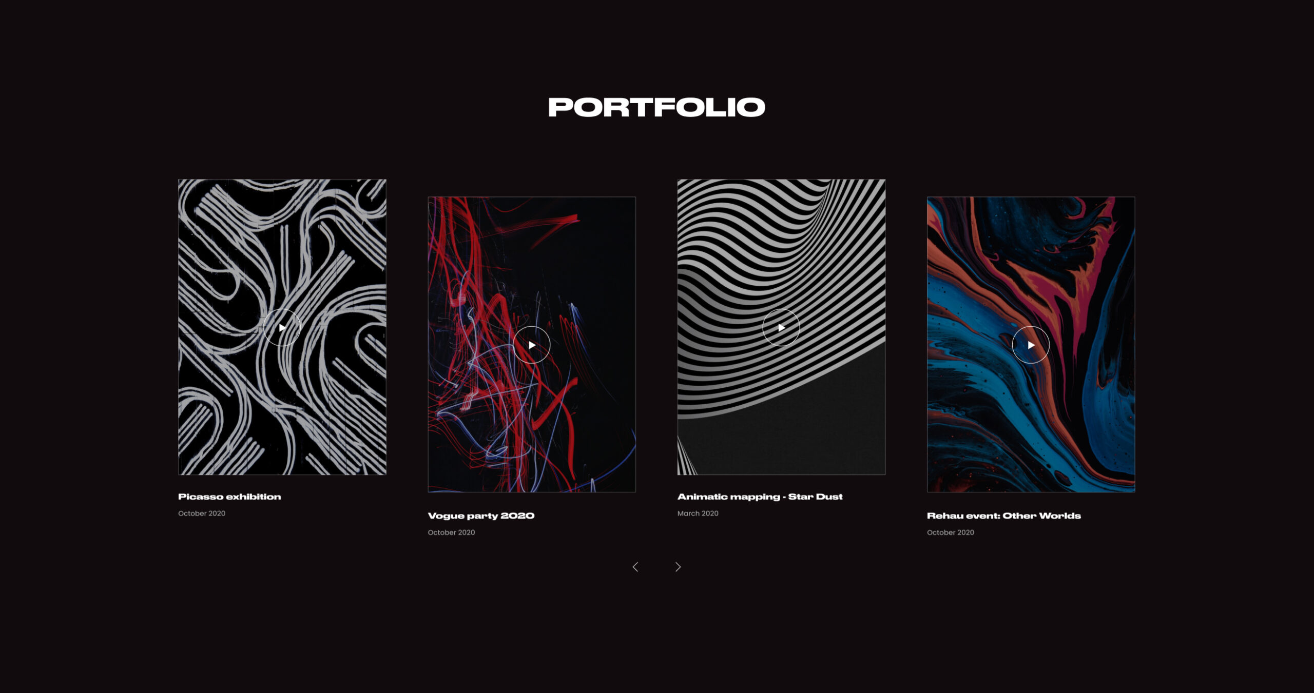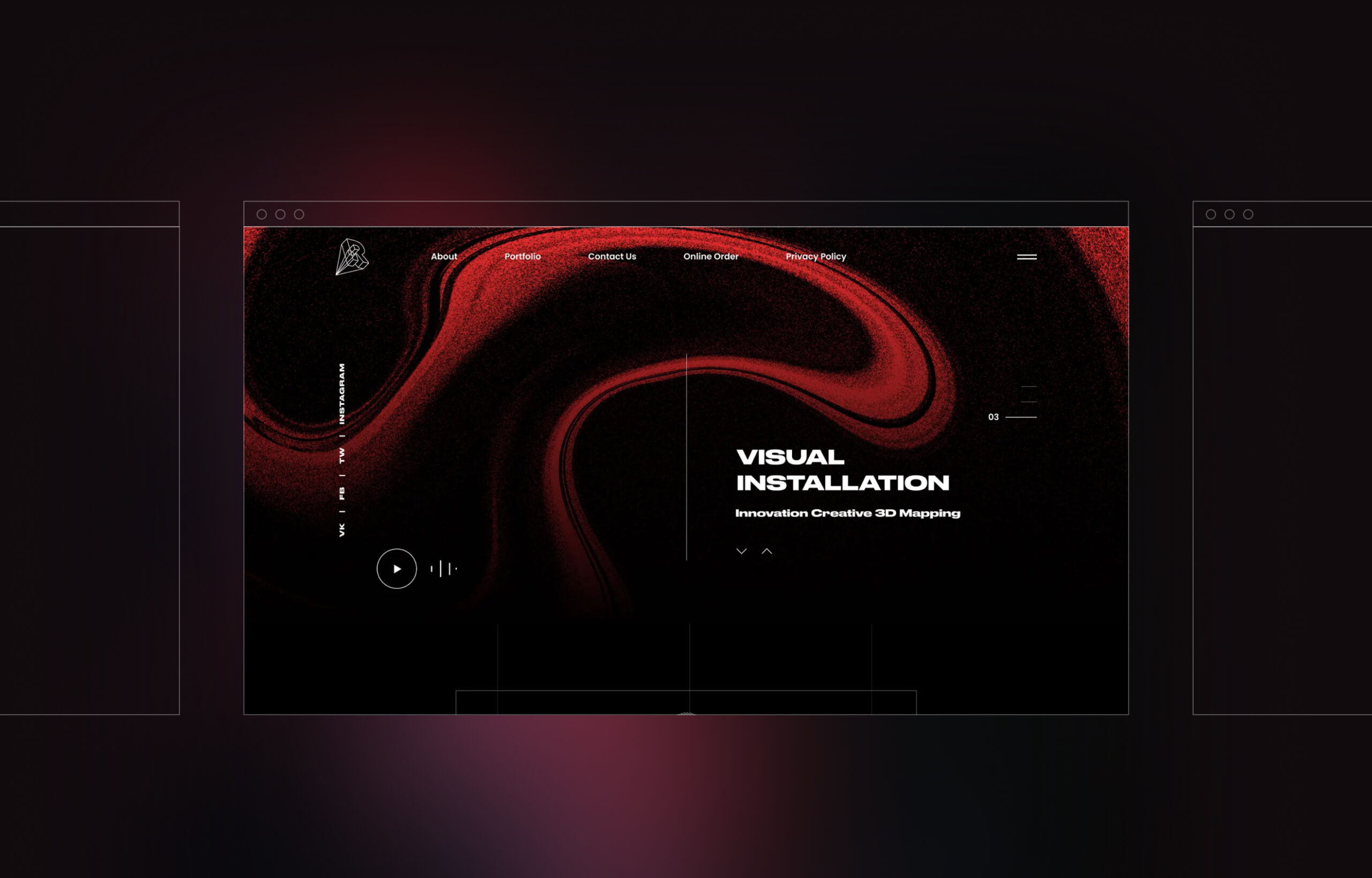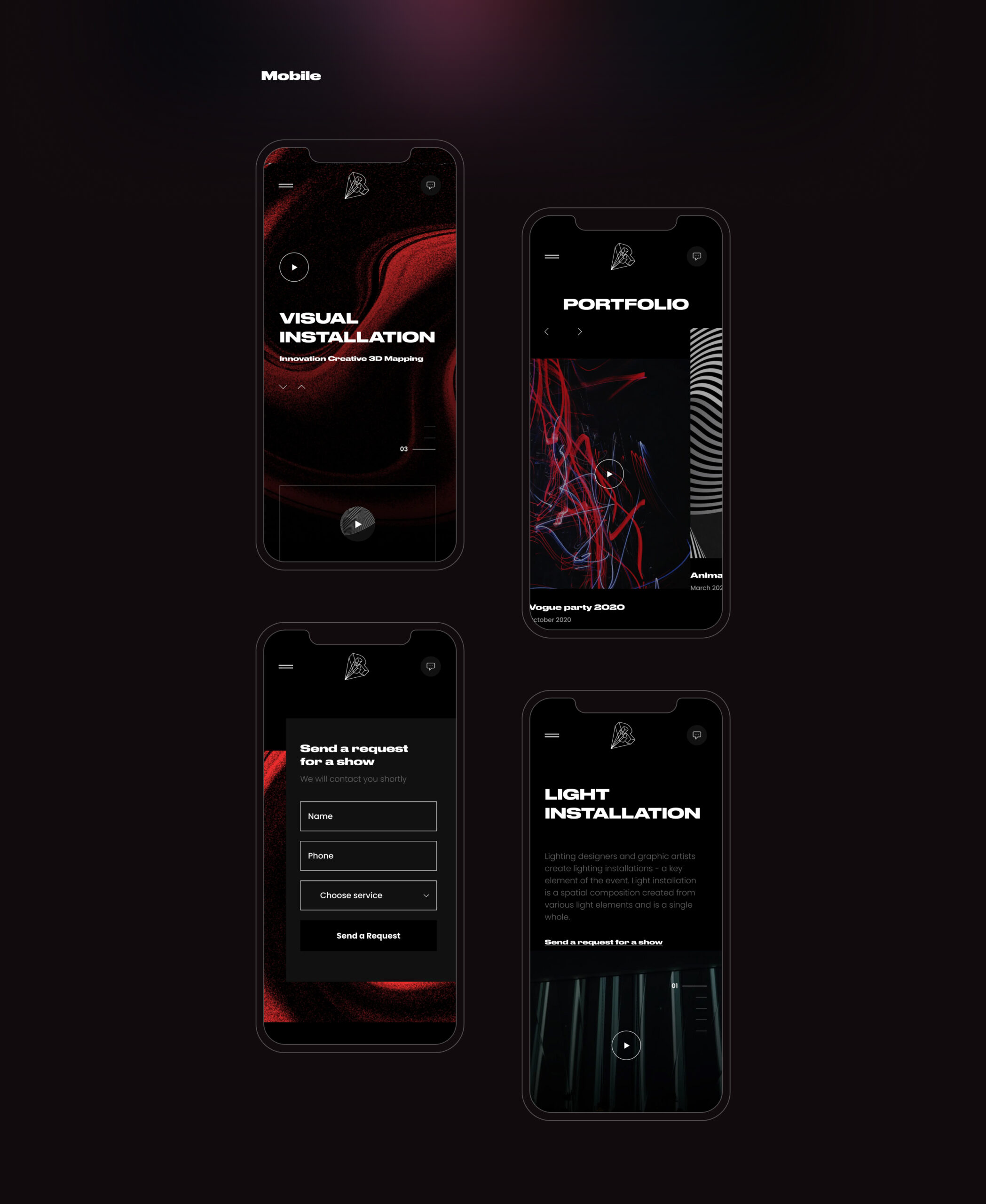 I designed and structured their first website from scratch as a dynamic promo landing. The interface was built around video fragments, motion blocks, and contrast-driven typography to simulate the atmosphere of their installations. Portfolio sections were structured to guide attention rather than overwhelm with content. A focused request form was embedded into the flow to convert interest into inquiries without breaking immersion. The design balanced cinematic presentation with clear service positioning.